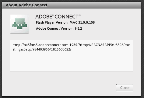 As well, if you click on Help and then hold down the right shift key and click About Adobe Connect… you can see how the user is connecting and if they’re tunneling: