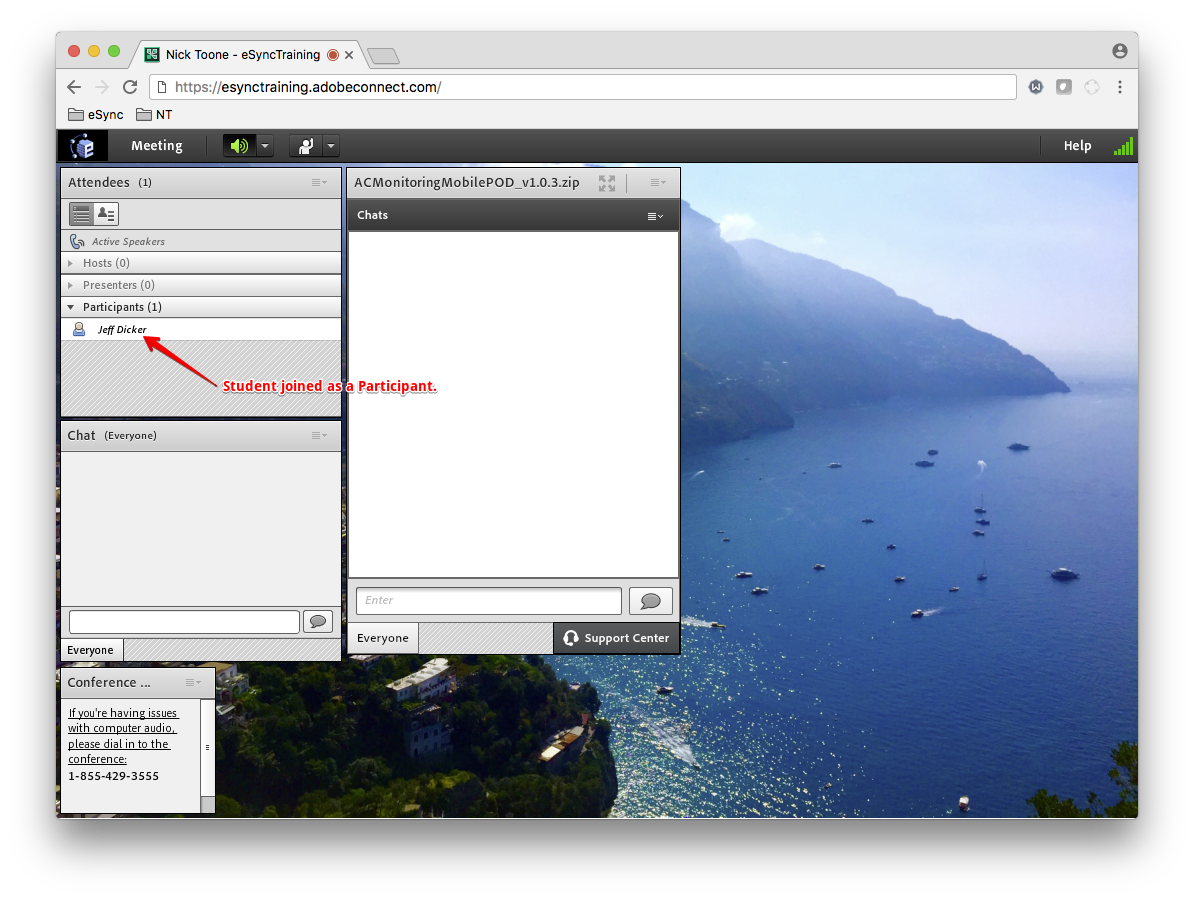 Reason: A user who is a member of the Adobe Connect Meeting Hosts group must be present in the Meeting in order for users with elevated roles to have the proper rights in the room.