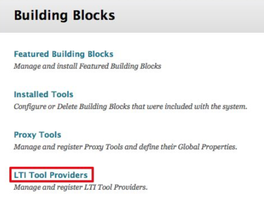 Click on LTI Tool Providers: