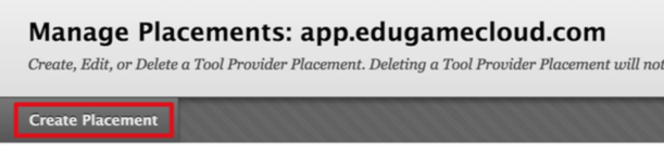 Back on the Manage Global Properties page, click on the Options menu next to app.edugamecloud.com and select Manage Placements.