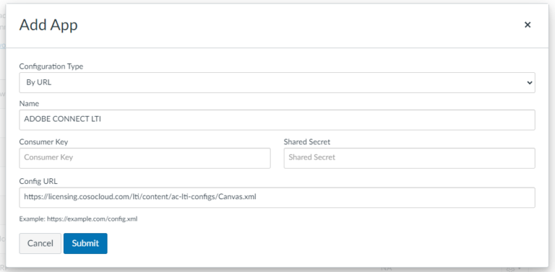 Installation of the LTI for Adobe Connect integration into Canvas is simple but requires some assistance from CoSo Cloud, which is done via a pre-scheduled meeting. This guide will provide you with the items you need to move forward with the installation and step-by-step instructions to install the LTI application within your Canvas instance.