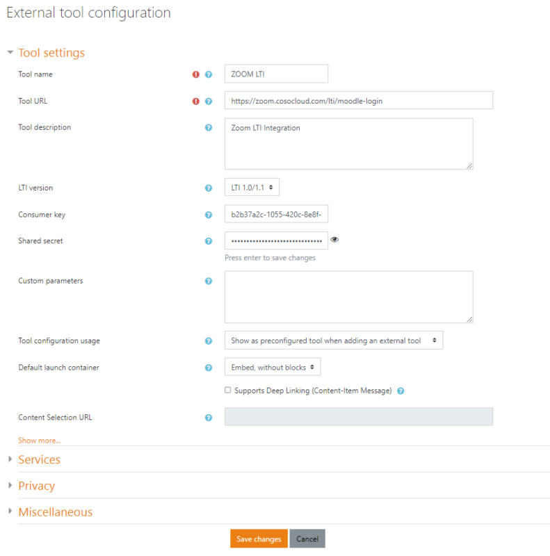 - Tool base URL: https://zoom.cosocloud.com/lti/moodle-login